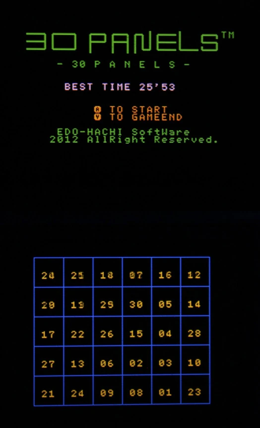 The numbers 1-30 are scattered across the screen on 30 panels. Just tap them all in proper number order. Aim for all 30 in the least amount of time.