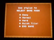 Use the stylus to move tiles around the grid to match colors. Object is to match colors to rid them from the grid in the time allotted. The larger the color tile bunch, the greater the score. ie: 10 tile bunch scores much higher than a 3 tile bunch. If you switch colors, then more tiles of that color may appear, therefor if you start eliminating white tiles, then continue until they are all gone, if you miss one then you may find them reappearing, so always check the tiles remaining portion on the upper screen, which also indicates which color groups are complete. Once all colors are eliminated, round is won and you move up a level, if time runs out then you lose a life and restart the round. When all lives are lost, game is over. There are 9 levels and with every level up the time to complete the level shortens. There are also various difficulty levels to start up in, my favorite is Quick Tile. In the start menu you can slide the stylus up and down the selections,where you lift the stylus is what you select. While passing over the selection, some game info on that selection will be displayed.